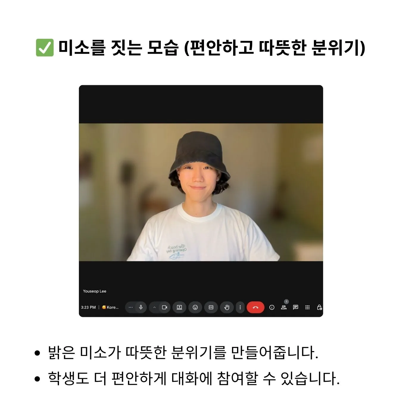 학생의 이름을 자주 불러주고, 리액션을 잘 해주고, 웃어주는 것만으로도 큰 안심을 느낍니다.
