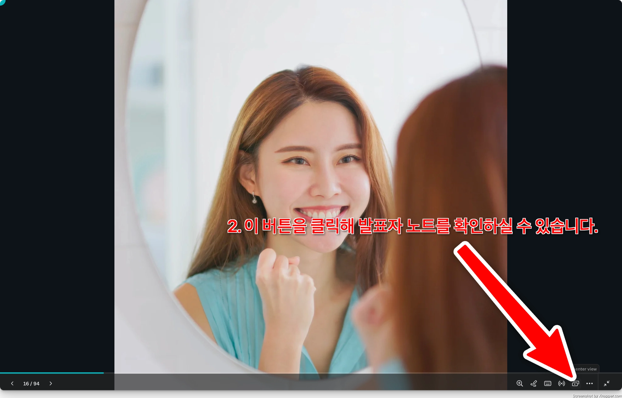 발표 모드 화면 우하단의 Presenter Mode 버튼 클릭